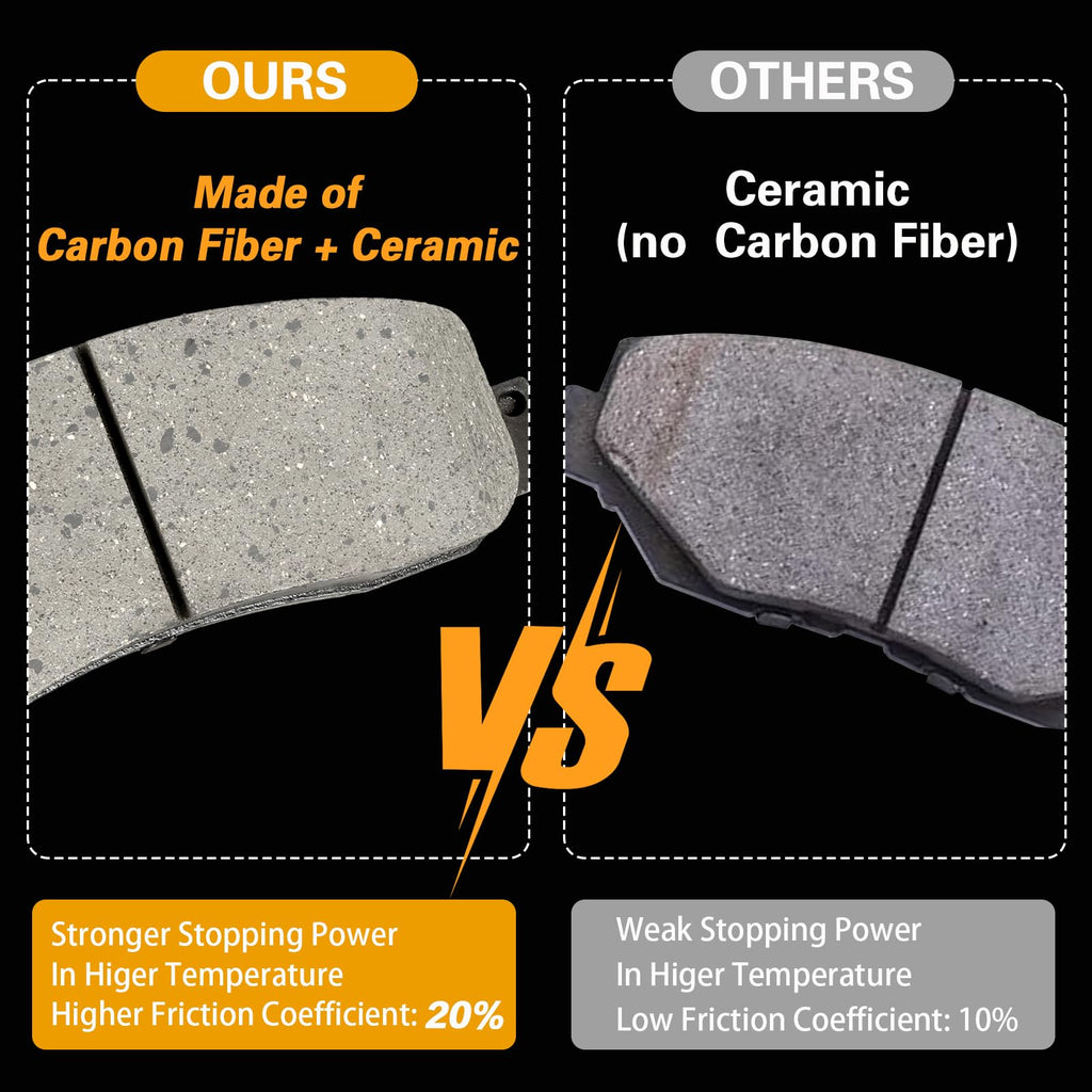- Carbon Fiber Ceramic Brake Pads: design for Truck and Tow, carbon fiber formula ceramic materials enhance a heavier loads vs. traditional ceramic brake pads.