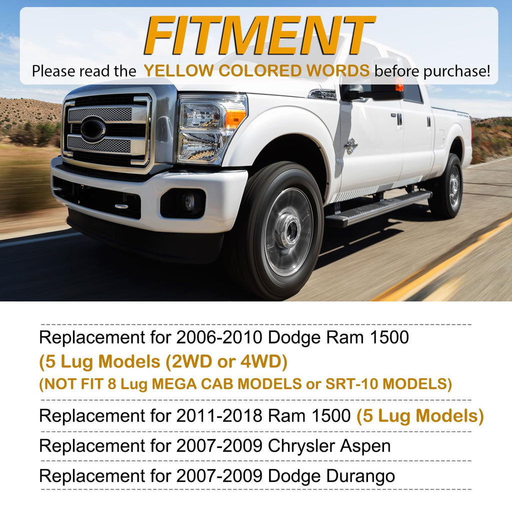 - FITMENT - The brakes and rotors kit front and rear replacement for 2006 2007 2008 2009 2010 Dodge Ram 1500 2011 2012 2013 2014 2015 2016 2017 2018 Ram 1500 / 2007 2008 2009 Chrysler Aspen / 2007 2008 2009 Dodge Durango.