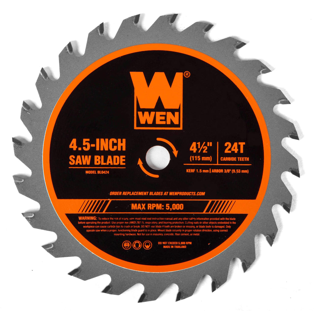 Details: Remember when you had a smooth cut with no tearout? The WEN 4-1/2-Inch Professional Woodworking Saw Blade provides reliable and accurate performance, maintaining its straight shape and sharp edges for longer than the competition. The machine-cut carbide-tipped teeth slice through woods of any kind, making easy work out of pine, oak, poplar, cherry, maple, walnut, and more. The 3/8-inch arbor allows for compatibility with the majority of 4-1/2-inch compact circular saws, both cordless and corded, on the market. Our unique protective coating fights off potential damage caused by heat, rust, corrosion, gumming, resin, and more. This lightweight, ultra-thin blade provides maximum efficiency during operation, leaving behind a kerf under 1/16-inch wide (1.5 mm). It’s time to get reliable and powerful performance with a WEN Saw Blade. Remember when you had a blade that lasted? Remember WEN.