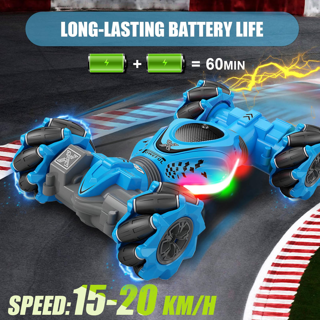 - 【Special Cool Dazzling Skills Car】: The Gesture RC Car will have brought endless joy to children. This gesture sensing RC stunt car is an absolute delight for kids in the 6-12 age range. It combines exciting features such as hand remote control, 360°rotation, and off-road capabilities to provide an immersive and thrilling playtime experience.