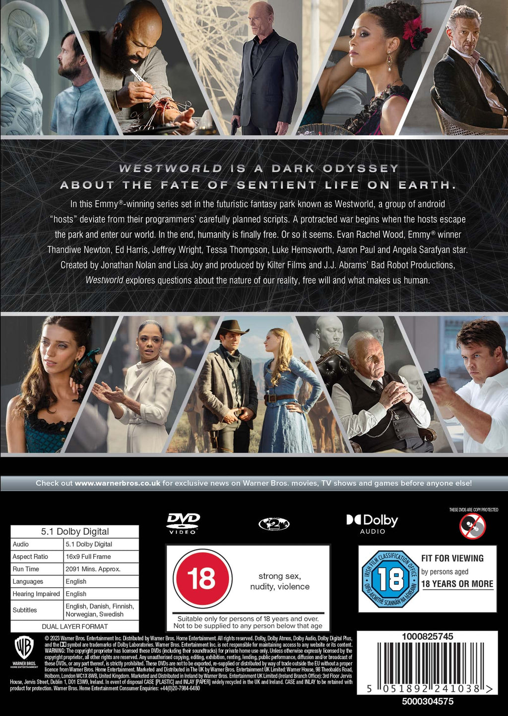 Details: WESTWORLD is a dark odyssey about the fate of sentient life on earth. In this Emmy®-winning series set in the futuristic fantasy park known as Westworld, a group of android "hosts" deviate from their programmers' carefully planned scripts. Seven years after the protracted war, humanity is finally free. Or so it seems. Evan Rachel Wood, Emmy® winner Thandiwe Newton, Ed Harris, Jeffrey Wright, Tessa Thompson, Luke Hemsworth, Aaron Paul, and Angela Sarafyan star in the series. Westworld was created for television by Jonathan Nolan & Lisa Joy, who are executive producers with Alison Schapker, Denise Thé, J.J. Abrams, Athena Wickham, Richard J. Lewis, and Ben Stephenson. The series is from Kilter Films and Bad Robot Productions in association with Warner Bros. Television, based on the film written by Michael Crichton.