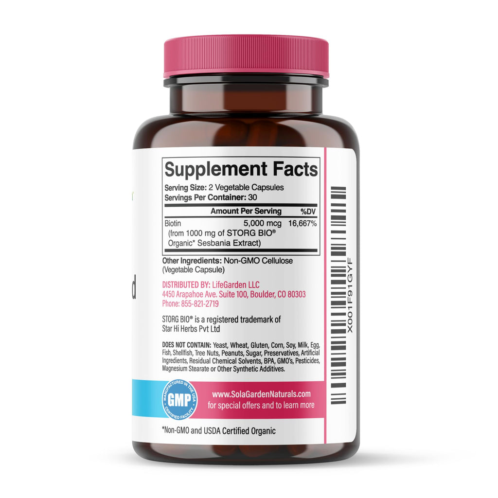 - MADE WITH STORG BIO USDA CERTIFIED ORGANIC PLANT BASED BIOTIN, water extracted from 100% certified organic Sesbania Agati trees native to South Asia.
