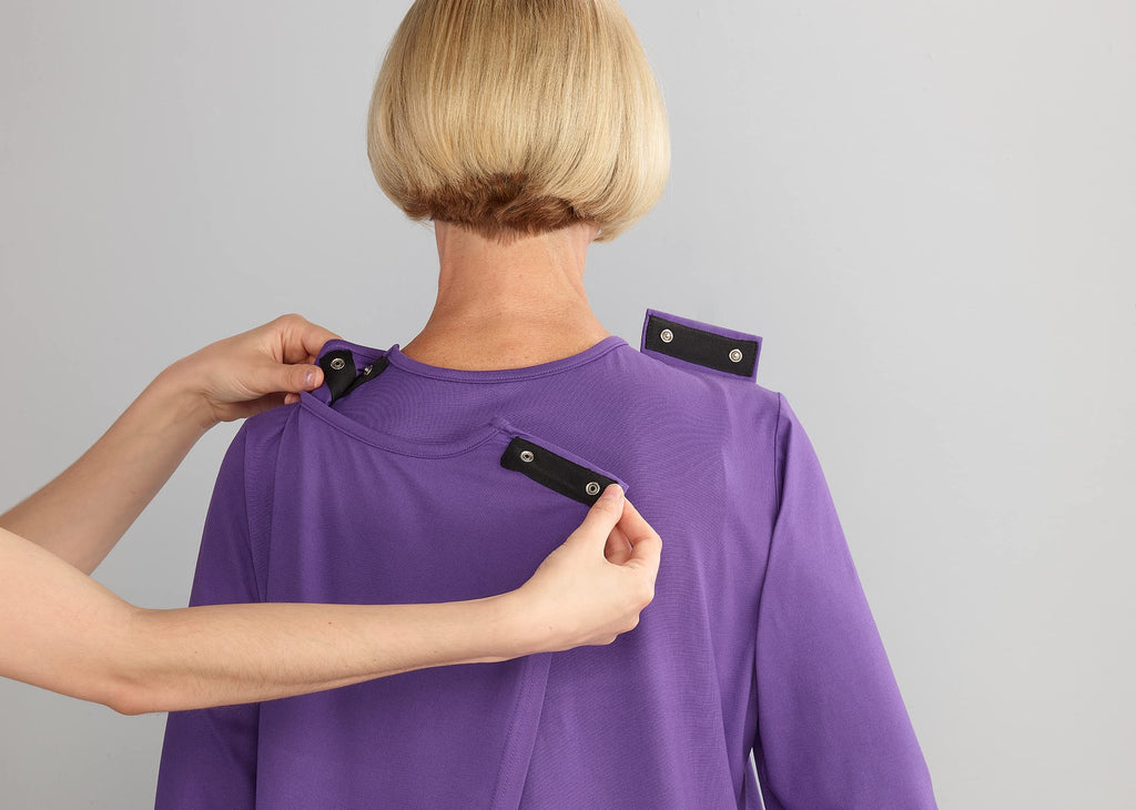 - OPEN-BACK DRESSING: These tops for elderly women open completely at the back, making the dressing process a breeze for the individual and caregiver. Thanks to safer open-back dressing solutions that include a full back overlap with easy connections at the shoulders, this open-back top is ideal for assisted dressing or self-dressing for anyone with decreased upper arm mobility.