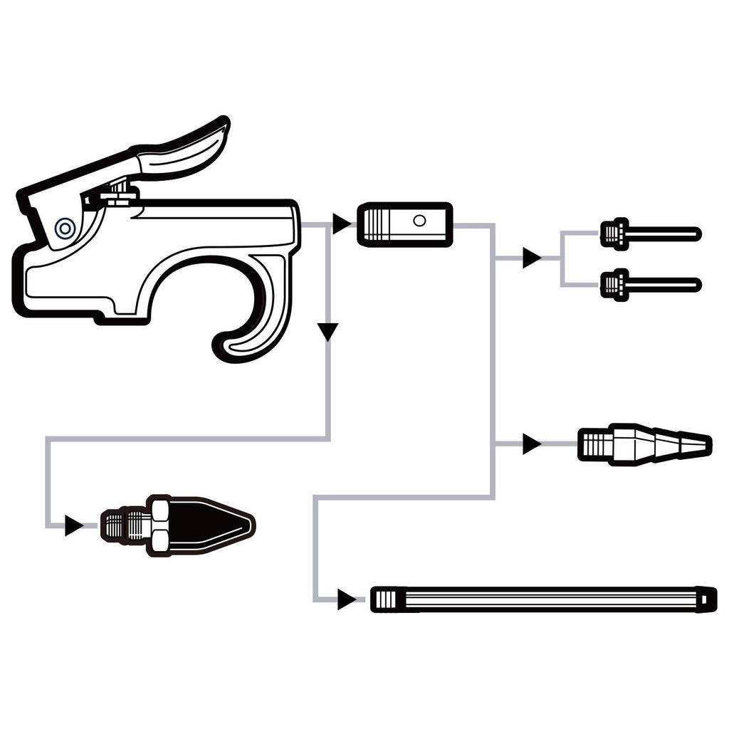 - This air blow gun kit includes non-marring soft rubber tip, metal tip, inflating needle, 4.7 inch long interchangeable tubes.