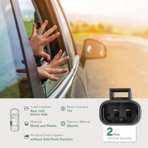 - Advanced Replacement: You will Get a Power Window Regulator with 2 Pins Window Motor (Without Anti-pinch Function); Mounting position: Rear Left, Driver Side; Material: Metal and Plastic for Long-Lasting Reliability. The reference part number is 15077722, 15135970, 741-578