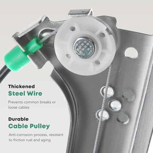 - Stable Operation: Through Up to 30,000 Tests, Ensuring that the Window Regulator Relay, Cable, Clips and Pulley are Durable to Standards. Window Regulator Hardware Kits are Built to Withstand -10 F to 150 F. Even in Adverse Weather, the Window Runs Smoothly on The Roller Guides