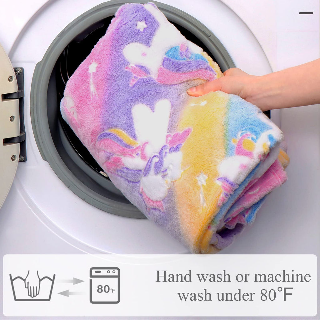 - 【Easy Care】Machine wash with cold water, tumble dry on low heat. Avoid direct heat and no bleach. Wash alone to prevent abrasion. It is vacuum sealed to protect the soft blanket from damage, wash it before use or gifting, the girls toys age 3-10 will instantly restore the fluffy and soft unicorn blanket, making it the perfect gifts for girls.