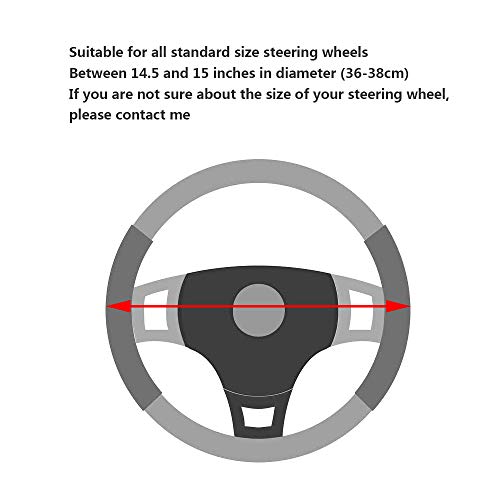 - Universal Fit: This car steering wheel cover suitable for size steering wheels from 14.5" to 15" (37 cm to 38 cm) in diameter.Universal size fits for most Vehicles, Sedans, SUVS, Vans, Trucks.