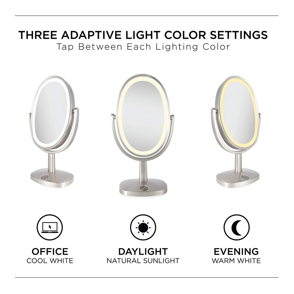 Details: Catch your best light with the Newport Lighted Makeup Mirror! This smart mirror has 5-time and 1-time magnification with 3 ultra-bright LED color temperatures for day, office, or evening light, so you can always find your perfect hue. Control the brightness with the touch pad and let the mirror remember your preferred setting. With its superior-quality glass, this mirror is perfect for bold adventurers ready to take their beauty game to the next level.
