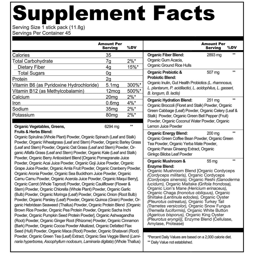 - π Packed with 70+ organic superfoods, greens, herbs & mushrooms