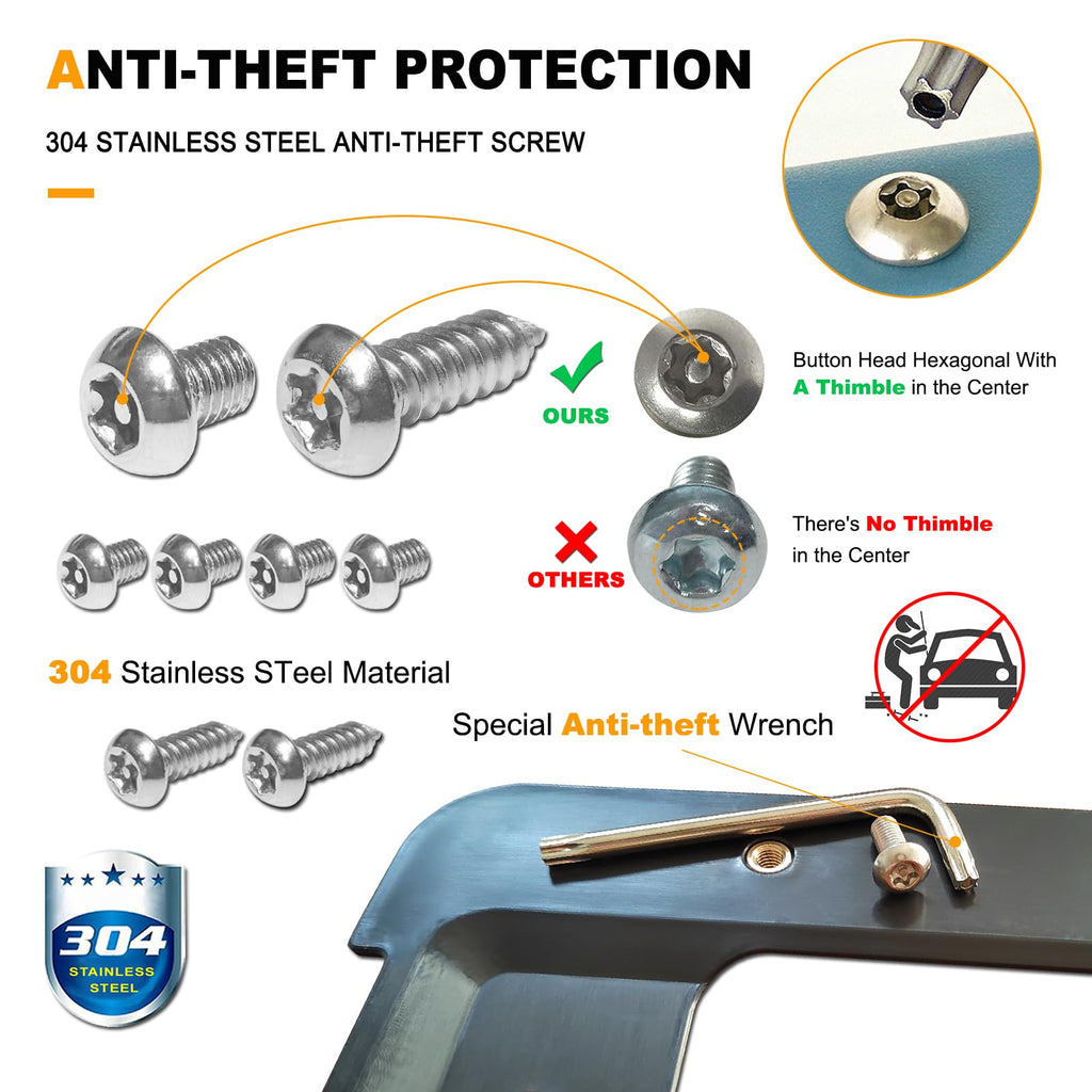 - Easy To Install- BMW and Mini Cooper Rear license plate mounting hardware kit includes stainless steel license plate screws, plastic expanding nuts inserts and black screw caps. M5*16mm (3/16X5/8 inches) self-tapping anti-theft screws can mount the bracket onto the trunk lid, And then use M5 mechanical bolts to fasten the tag plate and frame onto the BMW holder.